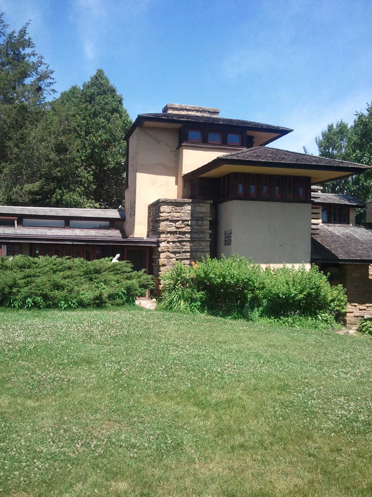 Taliesin. Trusty Google Navigation had us driving through weird backroads once we got off the highway, but we made it in plenty of time for our tour. It's safe to say we generally enjoyed the tour, despite the guide making apologetic jokes at Johnny about the low ceilings. (Johnny is 6'6.)